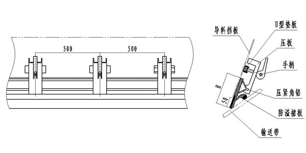 2、密封裙板高度可根據(jù)導(dǎo)料槽的實(shí)際尺寸適當(dāng)調(diào)整。